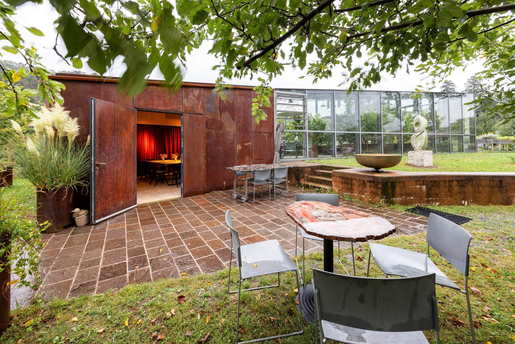 The veranda, on the other hand, is perfect for stylish company presentations. With its elegant ambience, the venue offers the ideal setting for company and product presentations – both in the sheltered indoor area and on the idyllic terrace overlooking the picturesque water lily pond. Here, architecture and nature come together at the highest level.